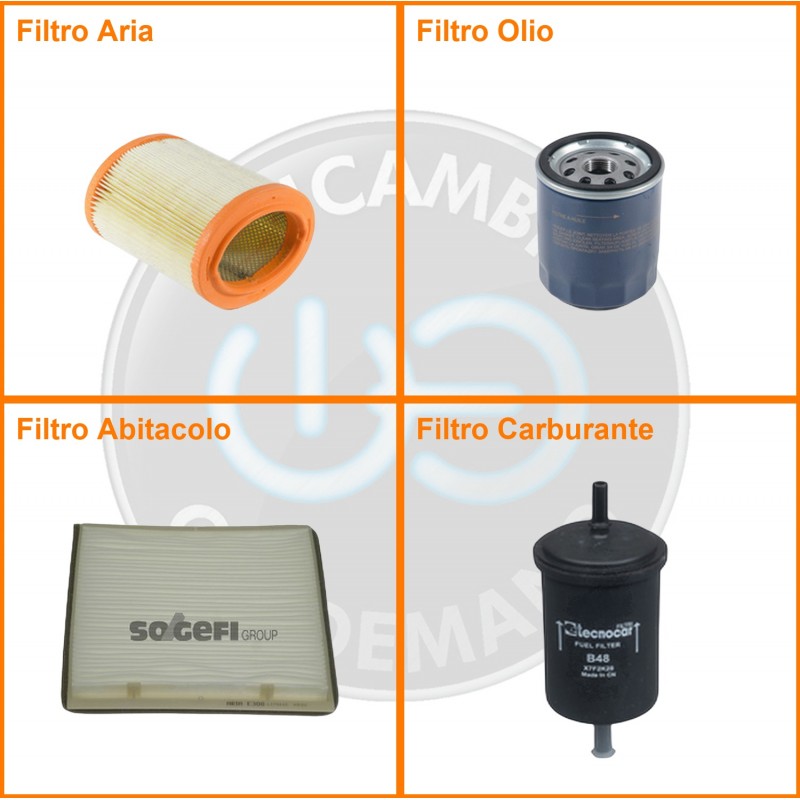 ComposizioneFiltro benzina, Filtro olio, Filtro abitacolo, Filtro aria