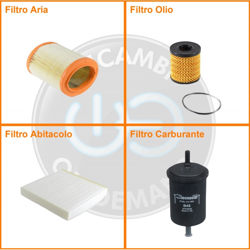 ComposizioneFiltro benzina, Filtro olio, Filtro abitacolo, Filtro aria