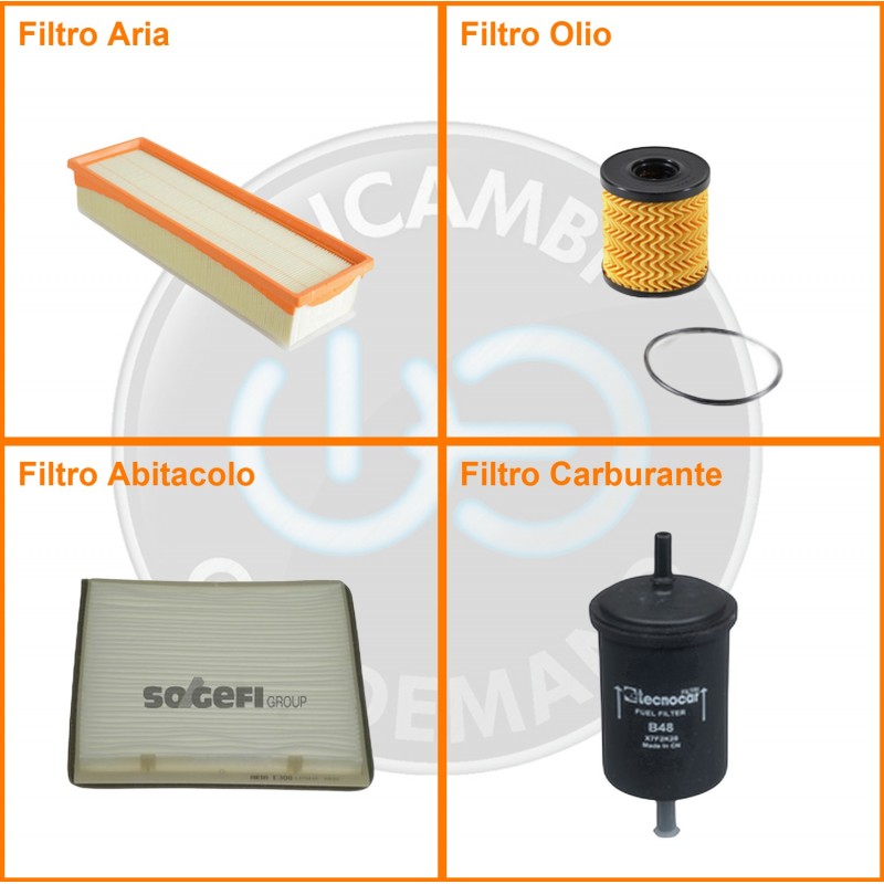 ComposizioneFiltro abitacolo, Filtro aria, Filtro benzina, Filtro olio