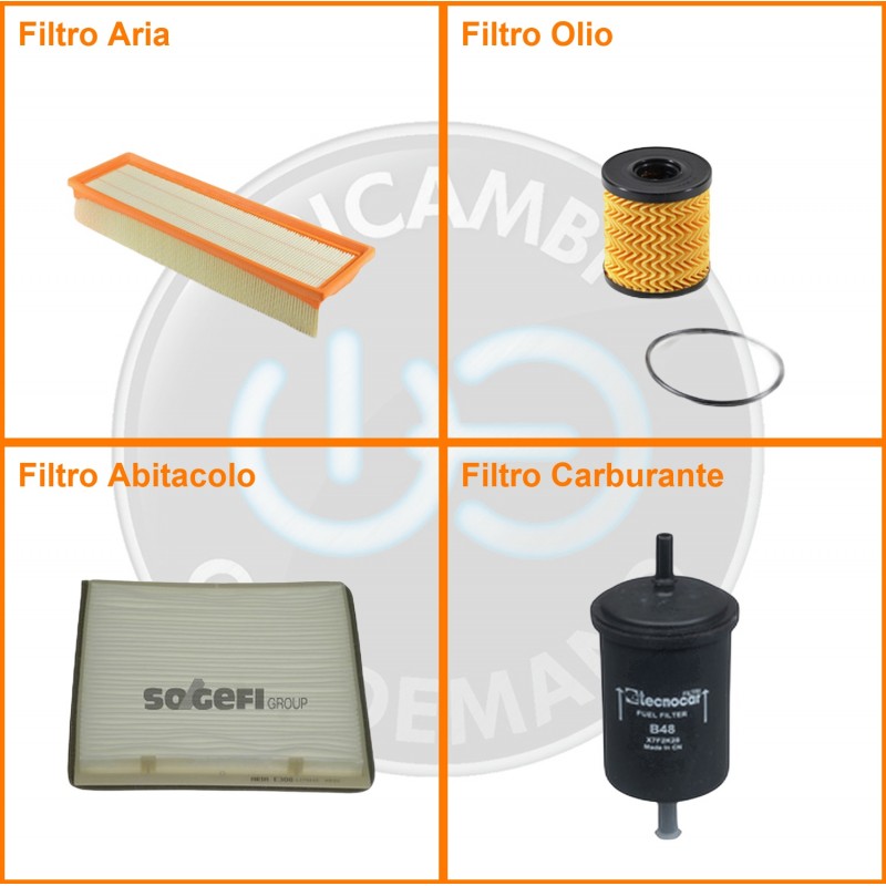 ComposizioneFiltro abitacolo, Filtro aria, Filtro benzina, Filtro olio