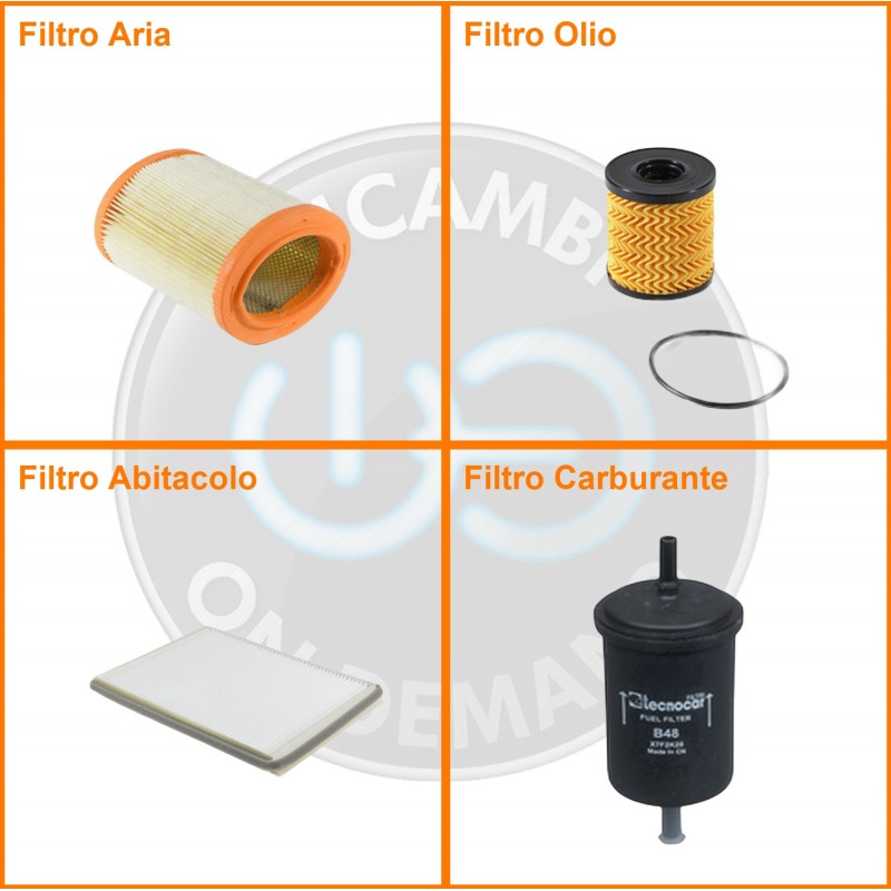 ComposizioneFiltro benzina, Filtro olio, Filtro abitacolo, Filtro aria