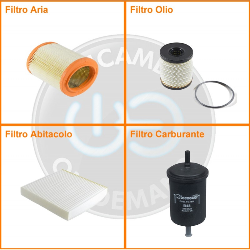 ComposizioneFiltro abitacolo, Filtro aria, Filtro benzina, Filtro olio