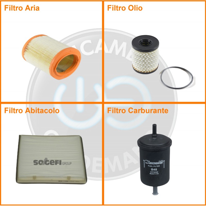 ComposizioneFiltro abitacolo, Filtro aria, Filtro benzina, Filtro olio