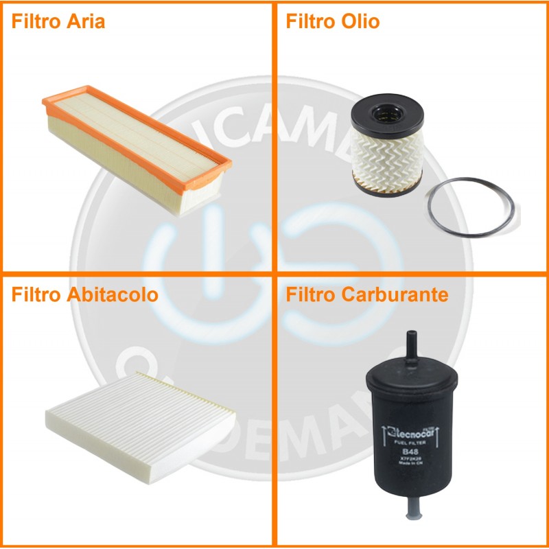 ComposizioneFiltro benzina, Filtro olio, Filtro abitacolo, Filtro aria