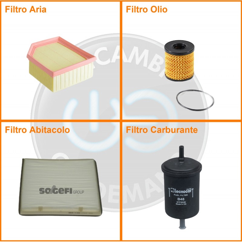 ComposizioneFiltro abitacolo, Filtro aria, Filtro benzina, Filtro olio