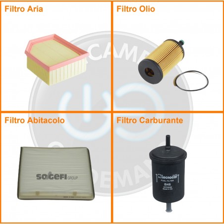 ComposizioneFiltro benzina, Filtro olio, Filtro abitacolo, Filtro aria