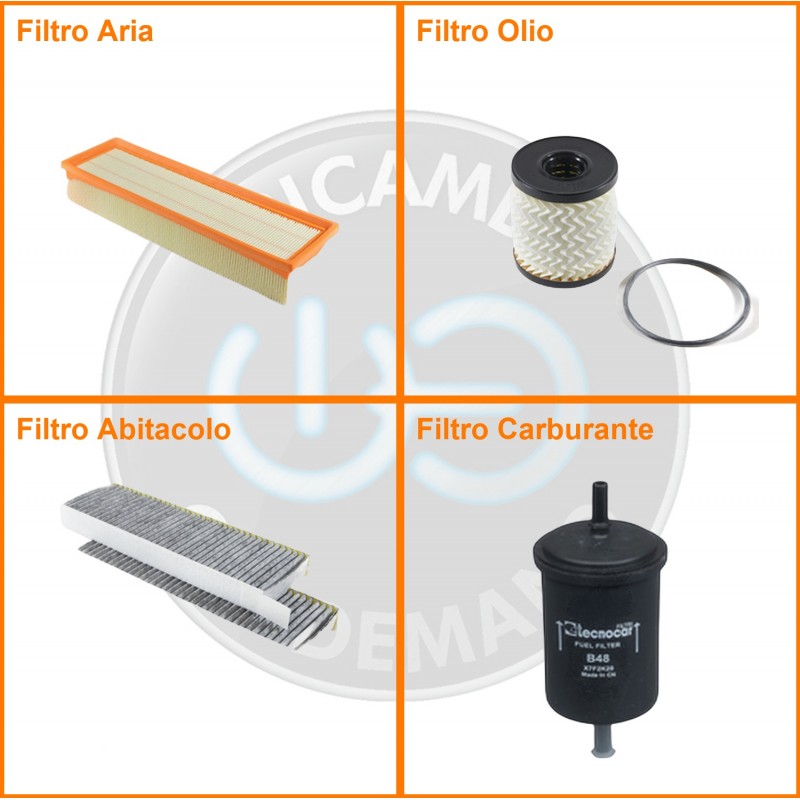 ComposizioneFiltro aria, Filtro benzina, Filtro olio, Filtro abitacolo ai carboni attivi