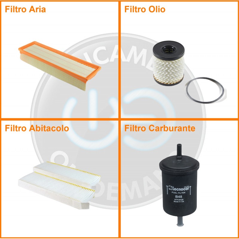 ComposizioneFiltro benzina, Filtro olio, Filtro abitacolo, Filtro aria
