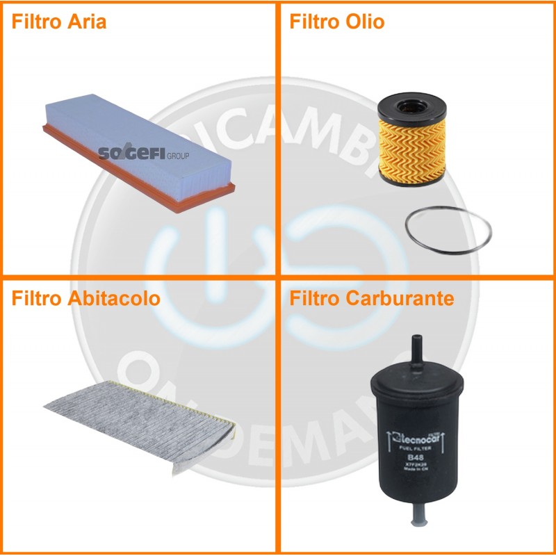 ComposizioneFiltro benzina, Filtro olio, Filtro abitacolo ai carboni attivi, Filtro aria