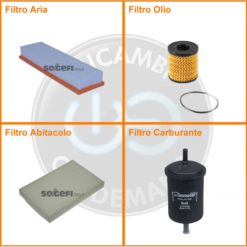 ComposizioneFiltro aria, Filtro benzina, Filtro olio, Filtro abitacolo