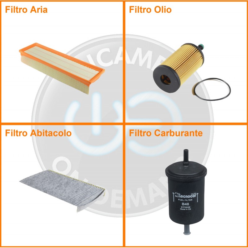 ComposizioneFiltro aria, Filtro benzina, Filtro olio, Filtro abitacolo ai carboni attivi