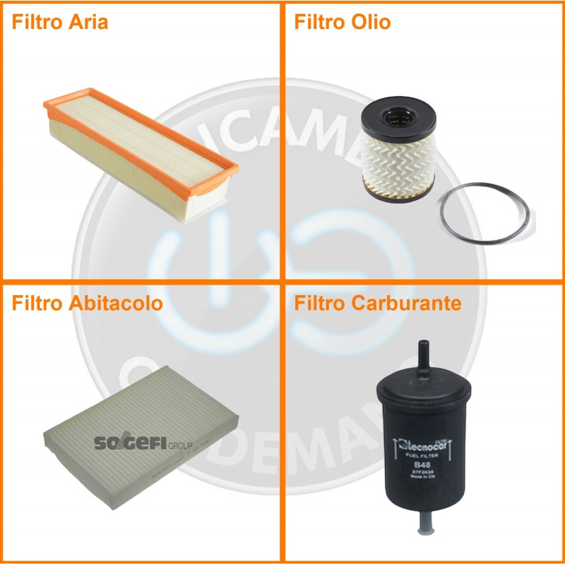 ComposizioneFiltro benzina, Filtro olio, Filtro abitacolo, Filtro aria