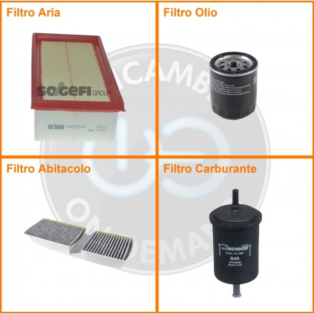 ComposizioneFiltro abitacolo ai carboni attivi, Filtro aria, Filtro benzina, Filtro olio