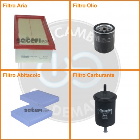 ComposizioneFiltro benzina, Filtro olio, Filtro abitacolo, Filtro aria