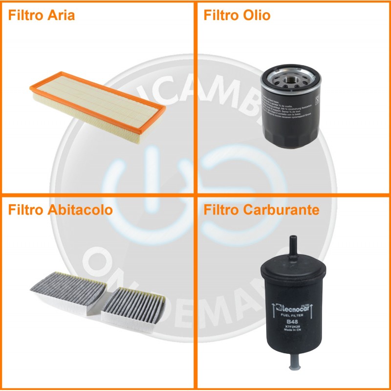 ComposizioneFiltro abitacolo ai carboni attivi, Filtro aria, Filtro benzina, Filtro olio
