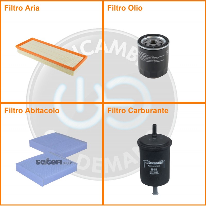 ComposizioneFiltro abitacolo, Filtro aria, Filtro benzina, Filtro olio