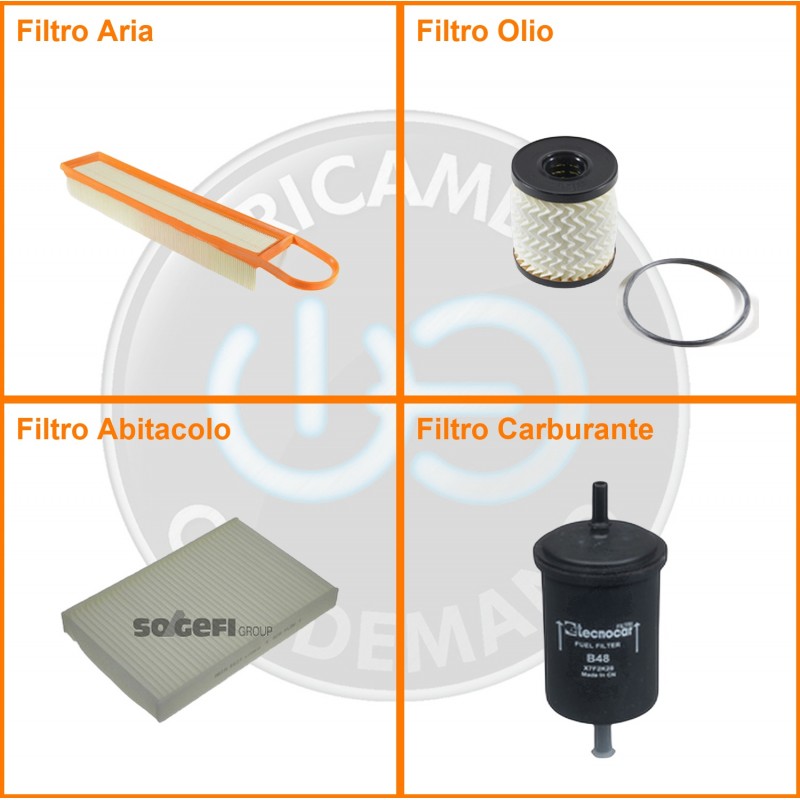 ComposizioneFiltro abitacolo, Filtro aria, Filtro benzina, Filtro olio