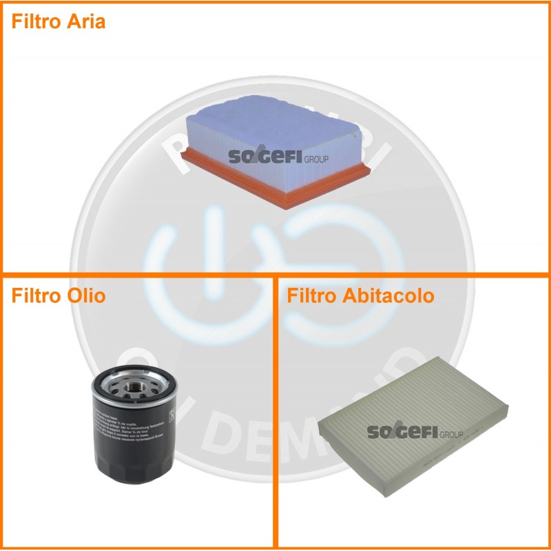 ComposizioneFiltro abitacolo, Filtro aria, Filtro olio
