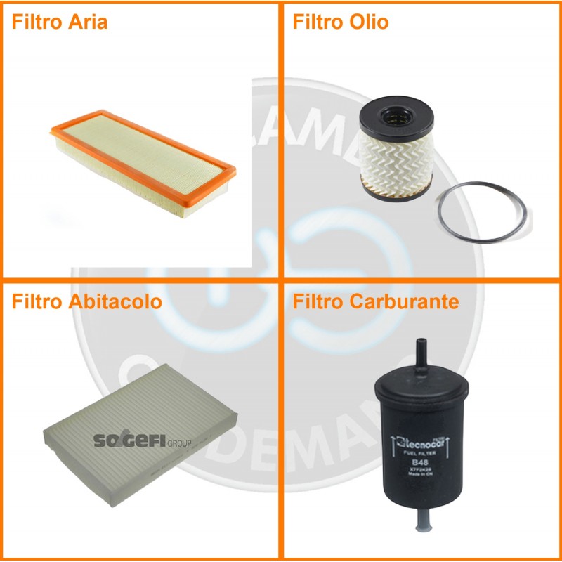 ComposizioneFiltro benzina, Filtro olio, Filtro abitacolo, Filtro aria