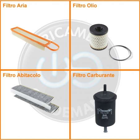 ComposizioneFiltro abitacolo ai carboni attivi, Filtro aria, Filtro benzina, Filtro olio