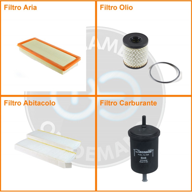 ComposizioneFiltro benzina, Filtro olio, Filtro abitacolo, Filtro aria