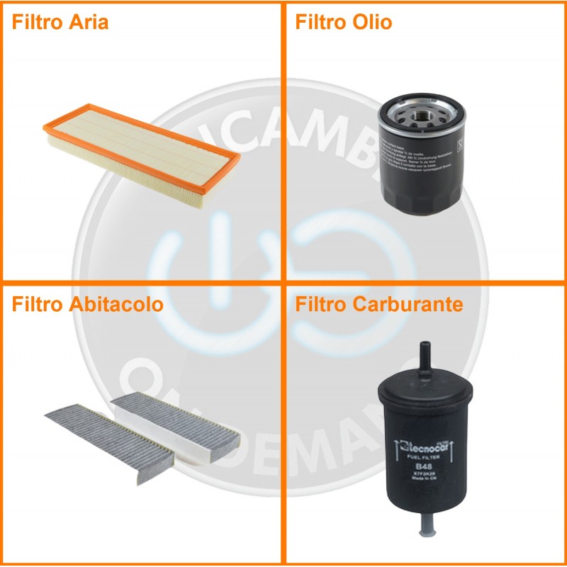 ComposizioneFiltro abitacolo ai carboni attivi, Filtro aria, Filtro benzina, Filtro olio