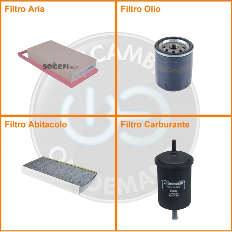 ComposizioneFiltro benzina, Filtro olio, Filtro abitacolo ai carboni attivi, Filtro aria