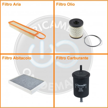 ComposizioneFiltro benzina, Filtro olio, Filtro abitacolo ai carboni attivi, Filtro aria