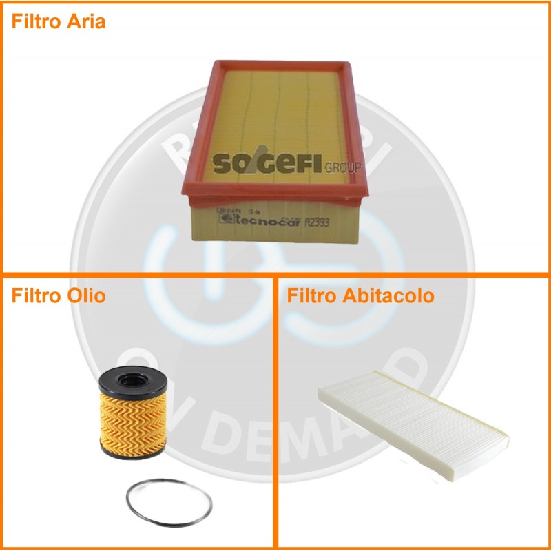 ComposizioneFiltro abitacolo, Filtro aria, Filtro olio