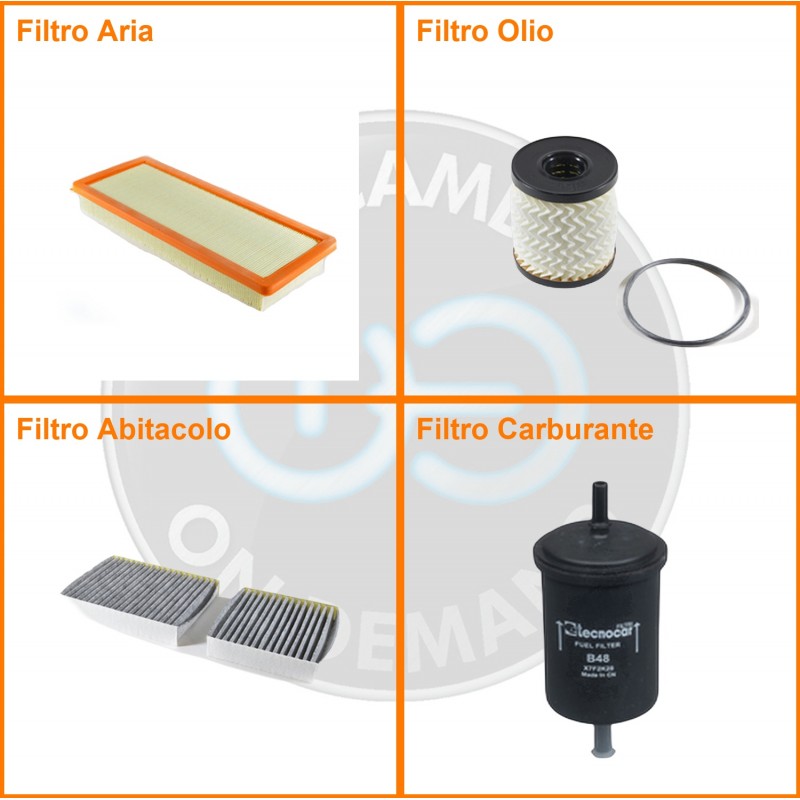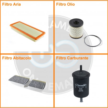 ComposizioneFiltro benzina, Filtro olio, Filtro abitacolo ai carboni attivi, Filtro aria