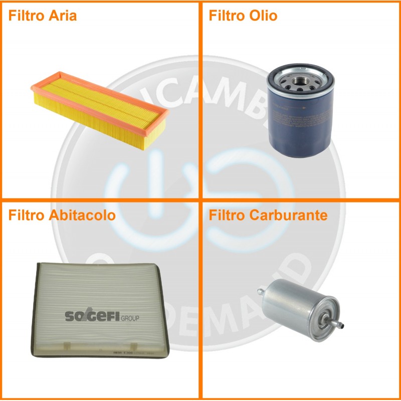 ComposizioneFiltro benzina, Filtro olio, Filtro abitacolo, Filtro aria