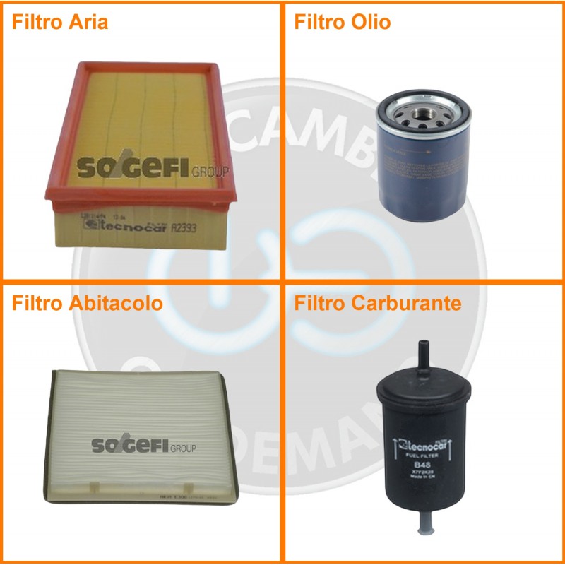ComposizioneFiltro benzina, Filtro olio, Filtro abitacolo, Filtro aria