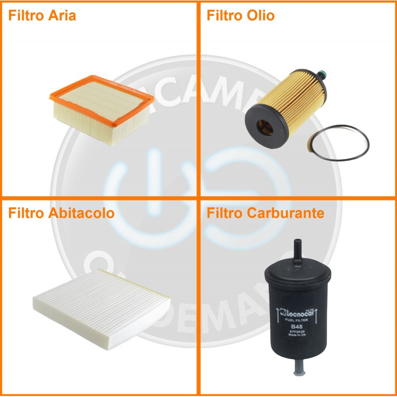 ComposizioneFiltro benzina, Filtro olio, Filtro abitacolo, Filtro aria