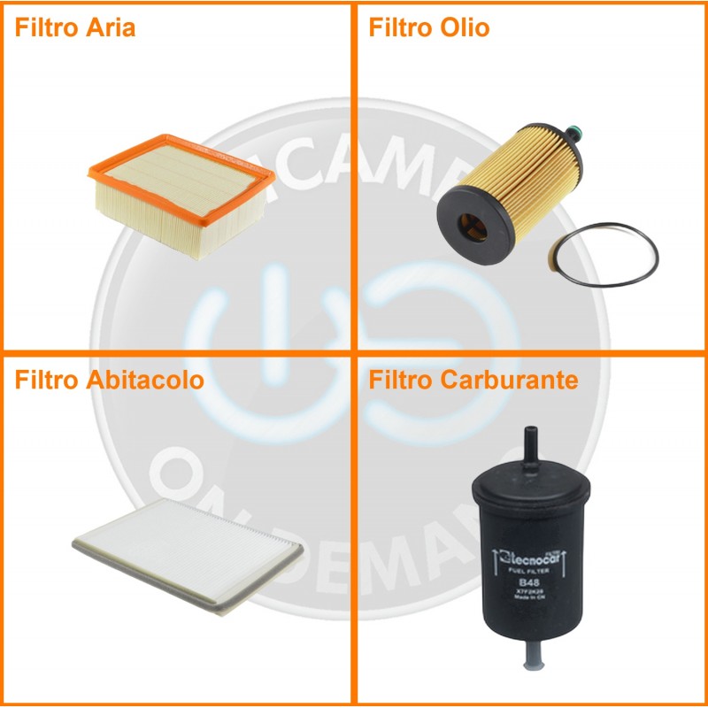 ComposizioneFiltro benzina, Filtro olio, Filtro abitacolo, Filtro aria