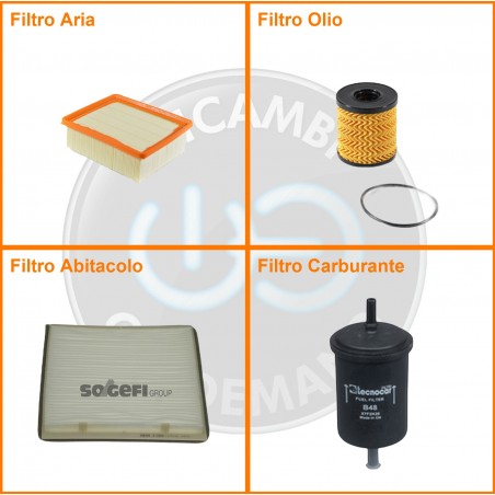 ComposizioneFiltro benzina, Filtro olio, Filtro abitacolo, Filtro aria