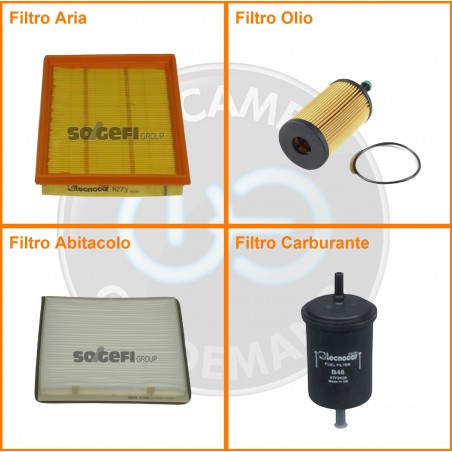 ComposizioneFiltro benzina, Filtro olio, Filtro abitacolo, Filtro aria