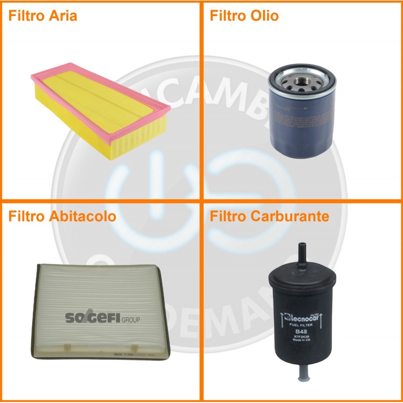ComposizioneFiltro benzina, Filtro olio, Filtro abitacolo, Filtro aria