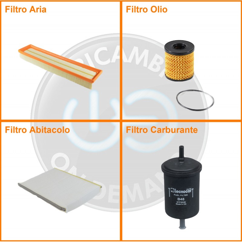 ComposizioneFiltro benzina, Filtro olio, Filtro abitacolo, Filtro aria