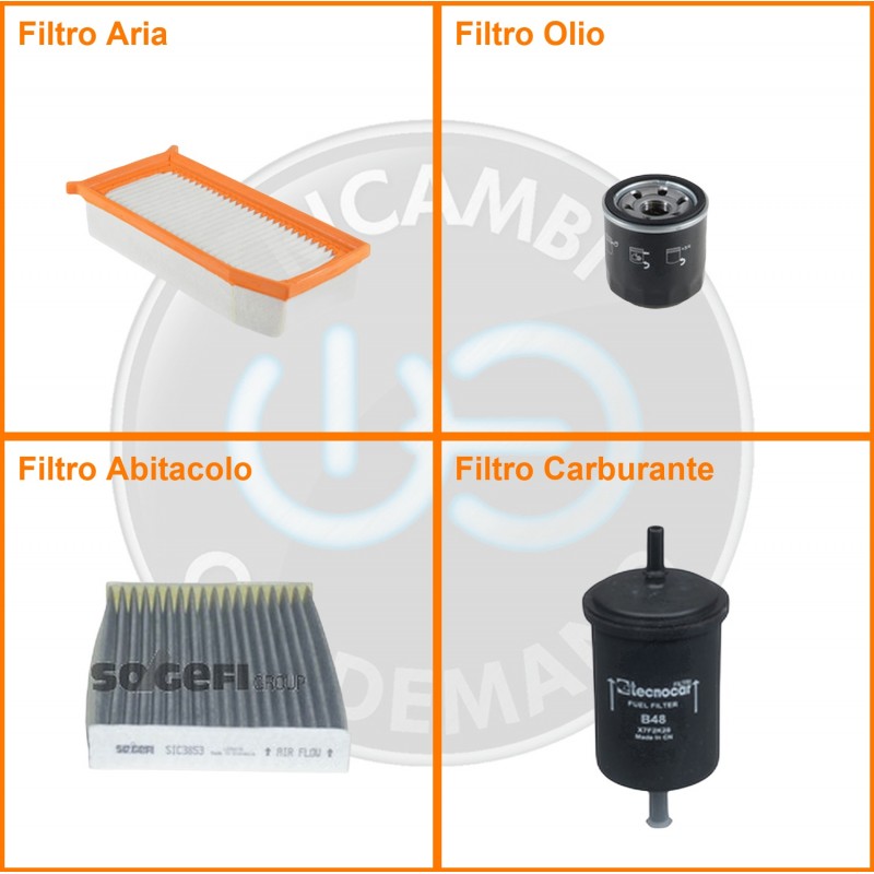 ComposizioneFiltro benzina, Filtro olio, Filtro abitacolo ai carboni attivi, Filtro aria