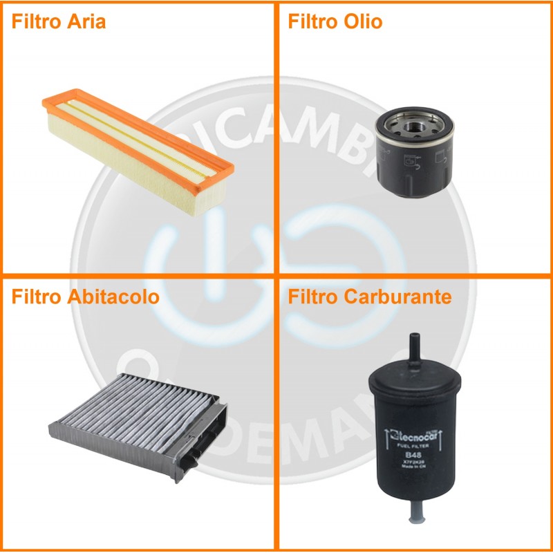 ComposizioneFiltro aria, Filtro benzina, Filtro olio, Filtro abitacolo ai carboni attivi