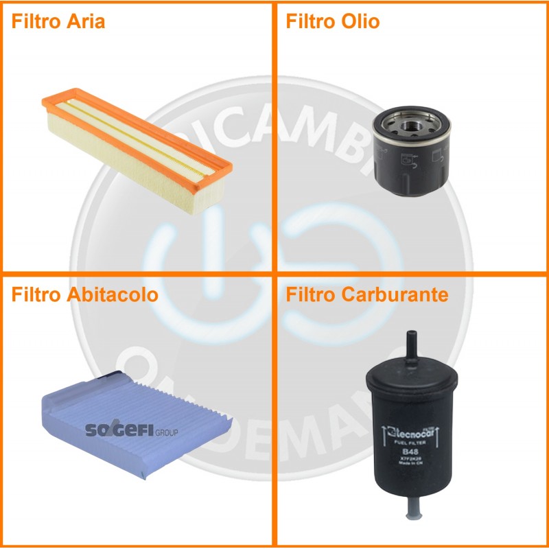 ComposizioneFiltro abitacolo, Filtro aria, Filtro benzina, Filtro olio