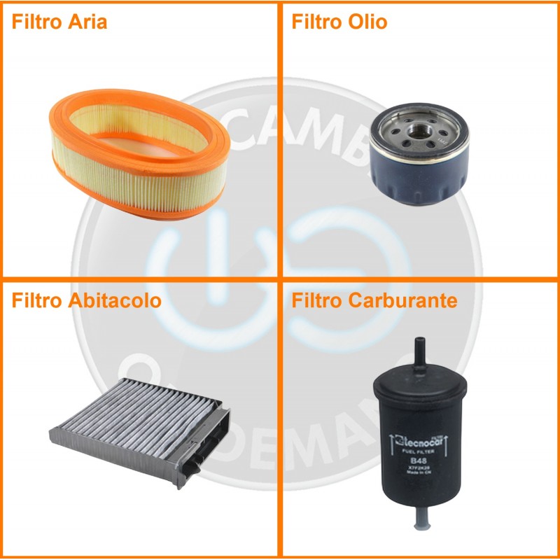 ComposizioneFiltro abitacolo ai carboni attivi, Filtro aria, Filtro benzina, Filtro olio