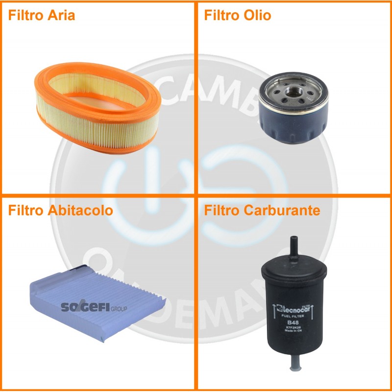 ComposizioneFiltro abitacolo, Filtro aria, Filtro benzina, Filtro olio