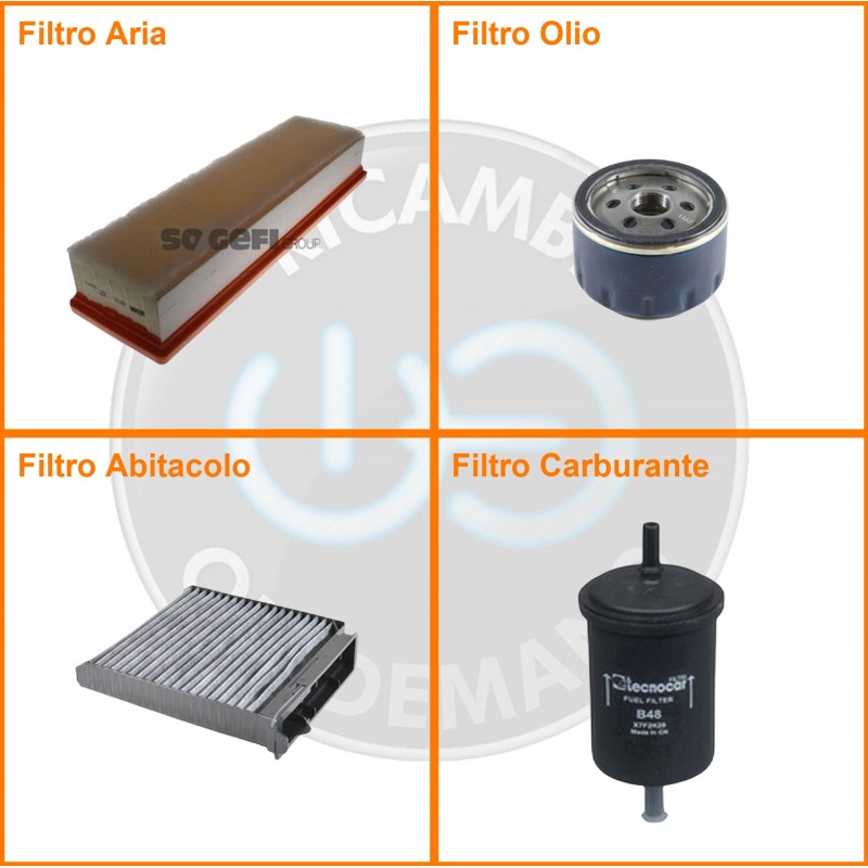 ComposizioneFiltro abitacolo ai carboni attivi, Filtro aria, Filtro benzina, Filtro olio