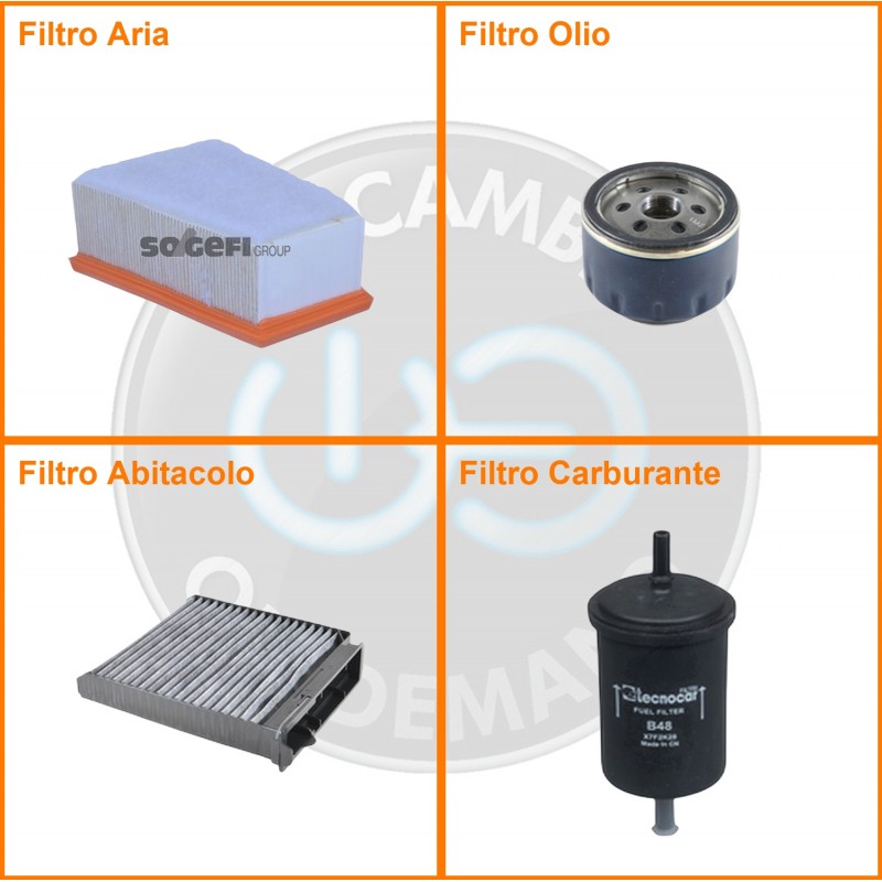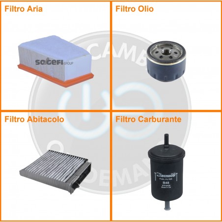 ComposizioneFiltro benzina, Filtro olio, Filtro abitacolo ai carboni attivi, Filtro aria