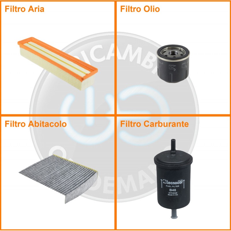 ComposizioneFiltro benzina, Filtro olio, Filtro abitacolo ai carboni attivi, Filtro aria