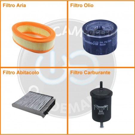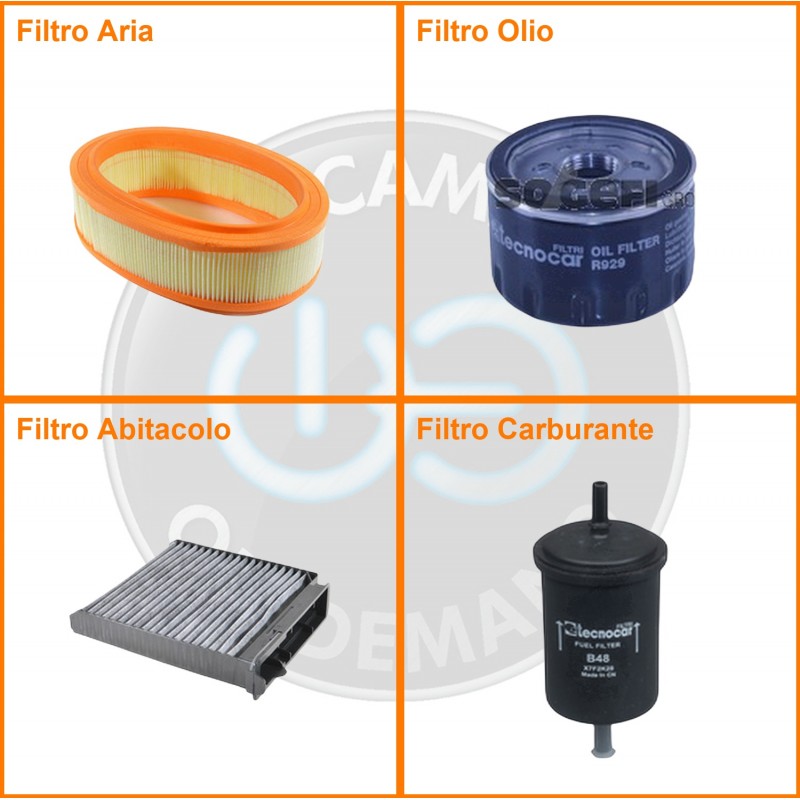 ComposizioneFiltro benzina, Filtro olio, Filtro abitacolo ai carboni attivi, Filtro aria