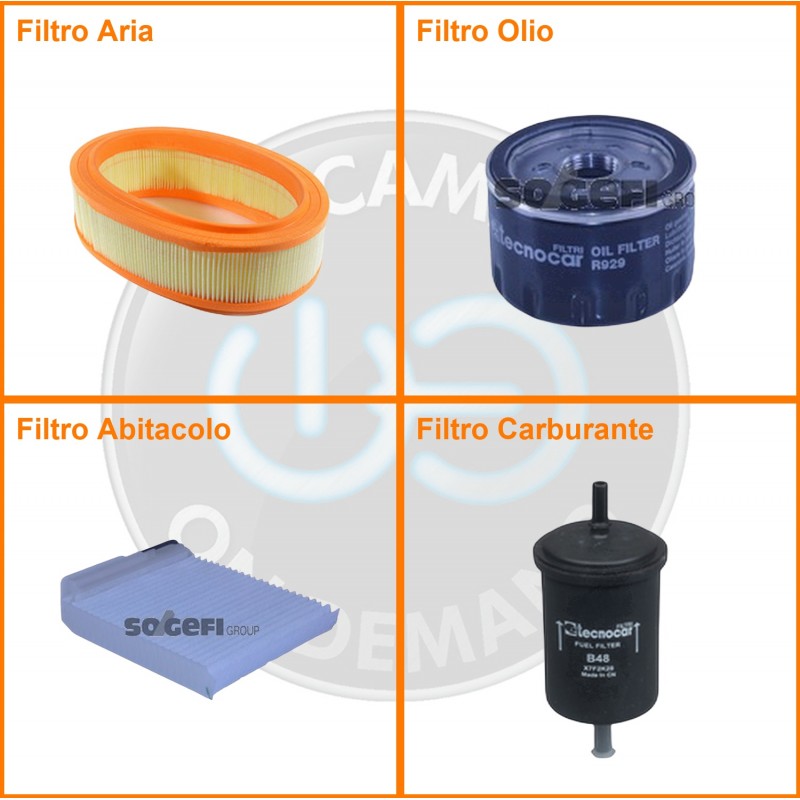 ComposizioneFiltro benzina, Filtro olio, Filtro abitacolo, Filtro aria