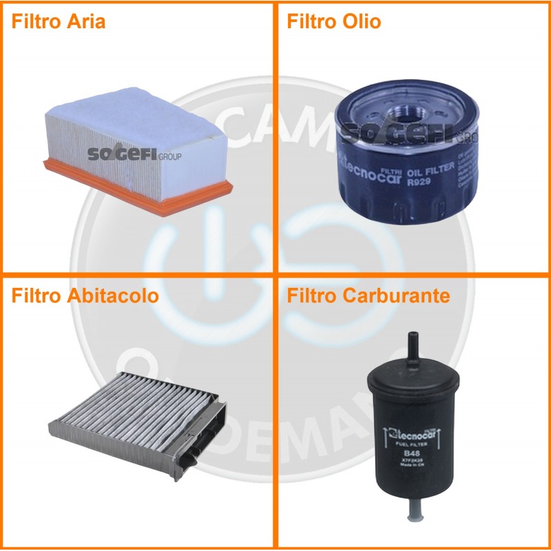ComposizioneFiltro abitacolo ai carboni attivi, Filtro aria, Filtro benzina, Filtro olio