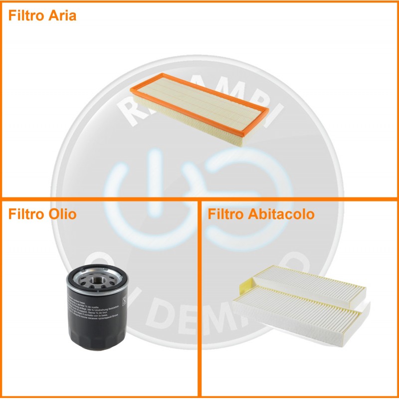 ComposizioneFiltro abitacolo, Filtro aria, Filtro olio